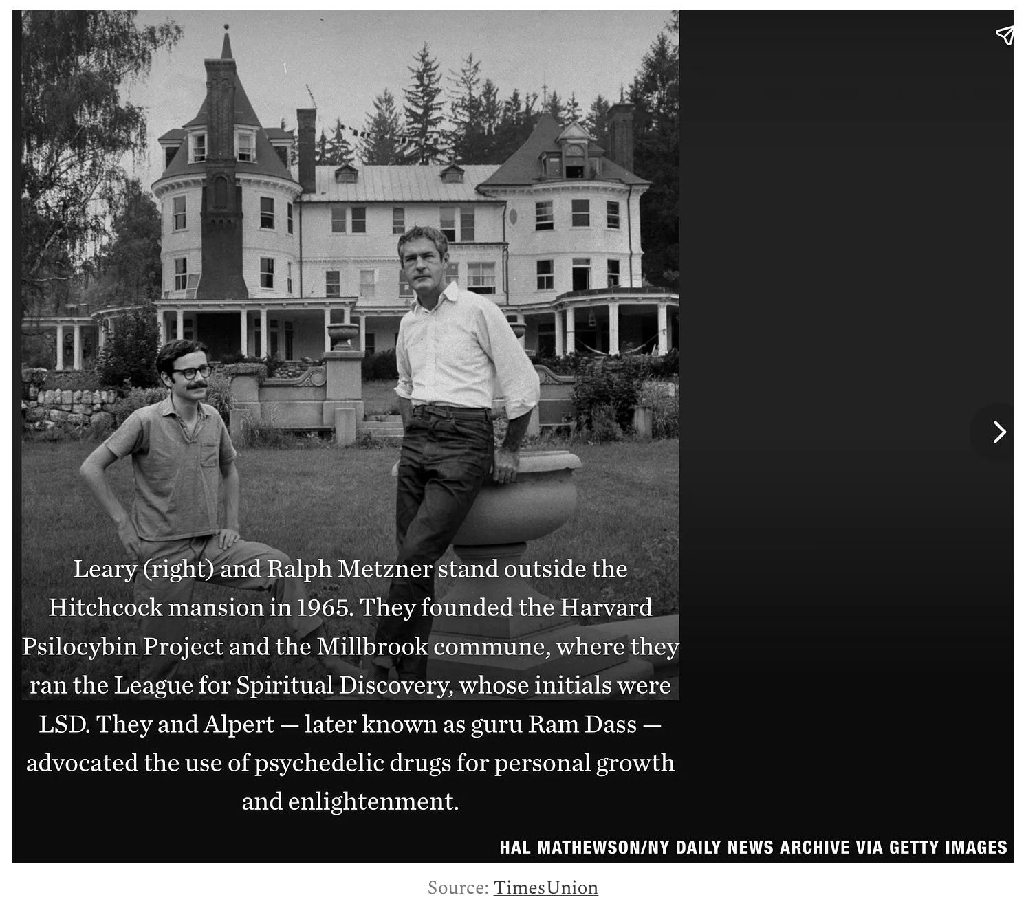 Psychedelic research and experimentation would live on through the 60s even after the Harvard Psychedelic Project closed down via avenues like the Brotherhood of Eternal Love and The League for Spiritual Discovery (initials LSD). Efforts continued for a time at Millbrook Estate in NY and the World Psychedelic Centre (WPC) in London. The foundation was forming that would lead to the MAHA psychedelic discussion in front of the American public a full 60 years later.