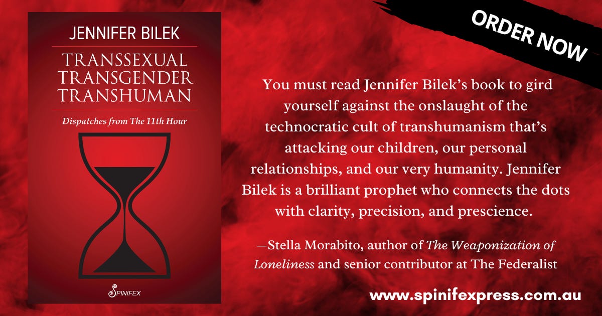 Jennifer Bilek is an investigative journalist who has tracked the funding of the gender industry for over a decade. She is author of the The 11th Hour, a platform highlighting the connections between technology, transsexualism, and transhumanism. Her research into the philanthropic backers of the gender industry has been utilized for legal briefs, and platformed in myriad publications, films, and other media in the US and internationally. She has appeared on The Megyn Kelly Show, Steven Bannon’s War Room, and James Patrick’s Big Picture, and on various other platforms and podcasts. She has been featured in films such as No Way Back (2023), Gender Transformation (2023), and The Gender Delusion (2023). Her work has been published in numerous books and magazines, among which: First Things, Tablet, Human Events, The Spectator World, The Federalist, The American Mind, and in the anthology Female Erasure. She is the author of Transsexual Transgender Transhuman: Dispatches From the 11th Hour.