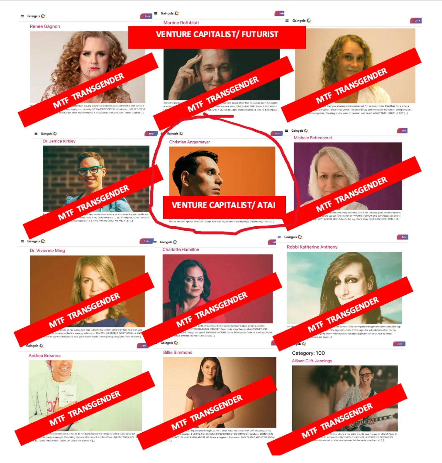 Regardless he has earned a spot in the pro LGBTQ Gaingels 100 alongside transhumanist MTF Martine Rothblatt, cross sex hormone entrepreneur MTF Jerrica Kirkley, and others. Gaingel’s motto, “influencing social change through venture investing,” explains this phenomenon.